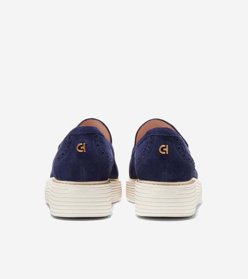 Hemos tomado una silueta clásica y le hemos dado un nuevo aire con el nuevo mocasín veneciano ØriginalGrand Platform. Este sencillo modelo sin cordones está confeccionado en ante de primera calidad con nuestros característicos detalles punteados y perforados. La suela de cuña con plataforma elevada incorpora nuestra tecnología patentada FlowerFoam™, diseñada con un mínimo del 25% de caucho natural de diente de león. Combina con todo, desde vaqueros y camisetas hasta vestidos y trajes, elevando tu estilo a nuevas cotas.